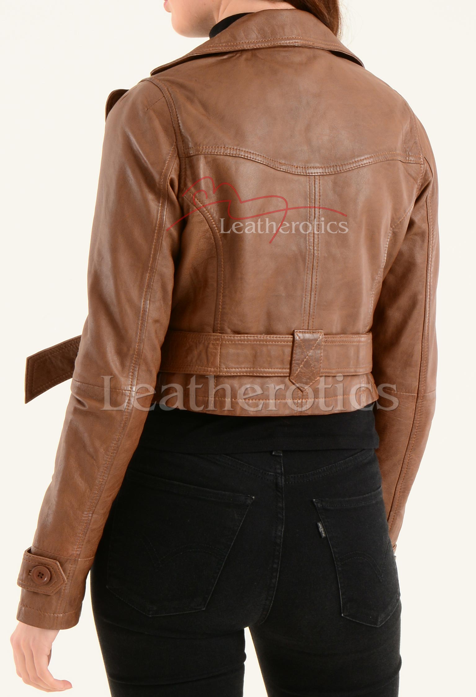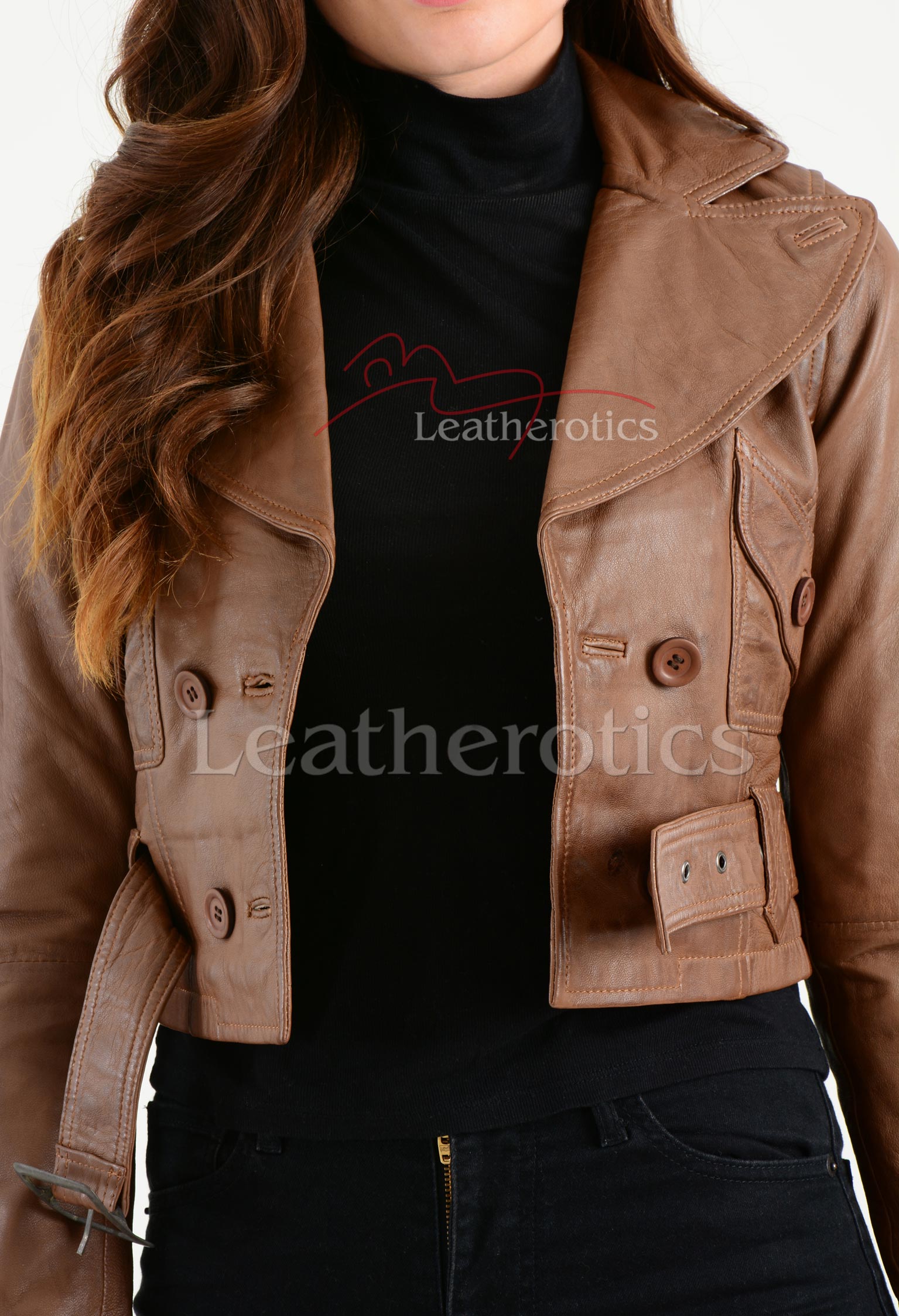 Layer on this cute crop leather jacket and watch your popularity soar! It features long sleeves with button cuffs and a notched lapel, button-down closures, flap pockets, and a flattering cropped belted hem.