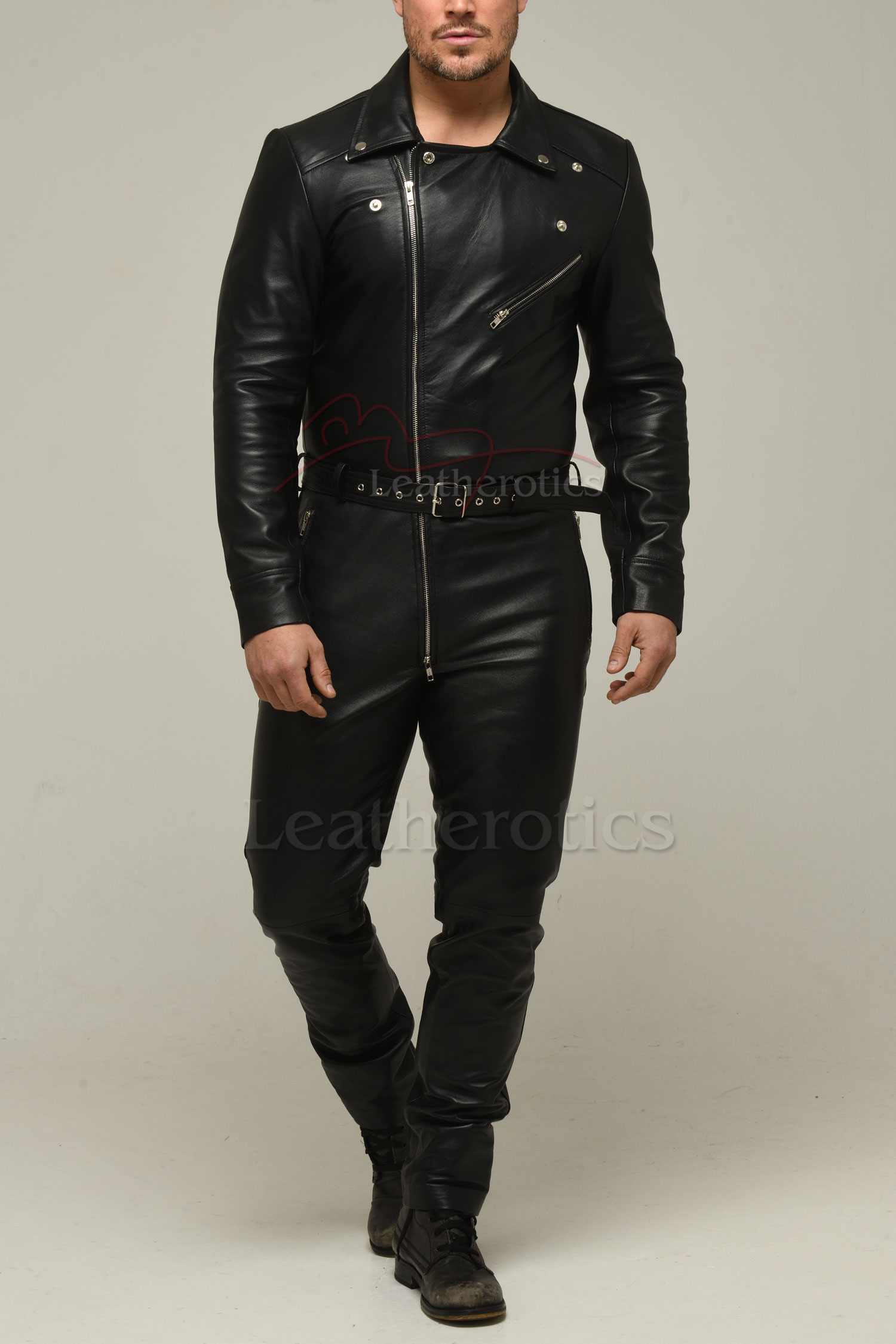 The goat nappa leather jumpsuit is the latest in our collection and available for men. Please place the order and we will be intouch via email to confirm all sizing and produce accordingly.